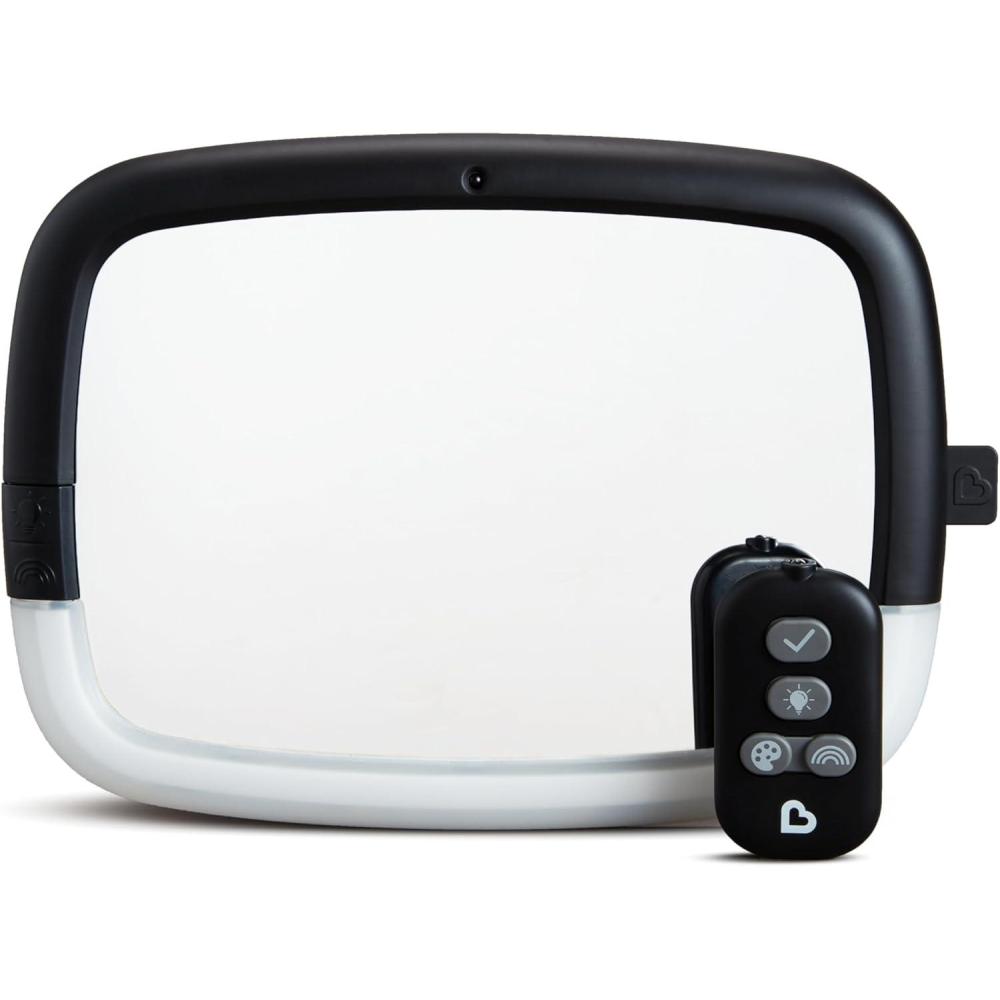 Munchkin Brica Night Light Pivot Baby In-Sight Wide-Angle Adjustable Car Mirror with Glare-free LEDs, Crash Tested & Shatter Resistant, Black Product description (optional) : When you're driving with precious cargo, there's nothing like seeing that sweet face in the rearview mirror, especially in the dark. The Brica Night Light Baby In-Sight Pivot Car Mirror lets you safely check in on your rear-facing baby, day or night. Unlike other nighttime mirrors whose glaring lights can distract the driver, the Brica Night Light Baby In-Sight Mirror is designed so that the gentle, warm LED lights provide a crystal-clear, glare-free view of baby, even in the darkest of nights. With four remote activated LED settings, this lighted mirror keeps tiny travelers company in the backseat. Get peace of mind with a 30 second safety check light or activate the soft night light for 30 minutes instead. Select different color settings to help soothe fussy babies or entertain them with a light display that alternates colors every 5 seconds, all controlled from the driver's seat. This extra large car seat mirror fits securely on adjustable headrests to provide superior, distortion-free views. And as baby grows, you'll appreciate its pivoting design which captures the perfect angle every time. Baby's on board, and so are you – with brighter, smoother car rides ahead.