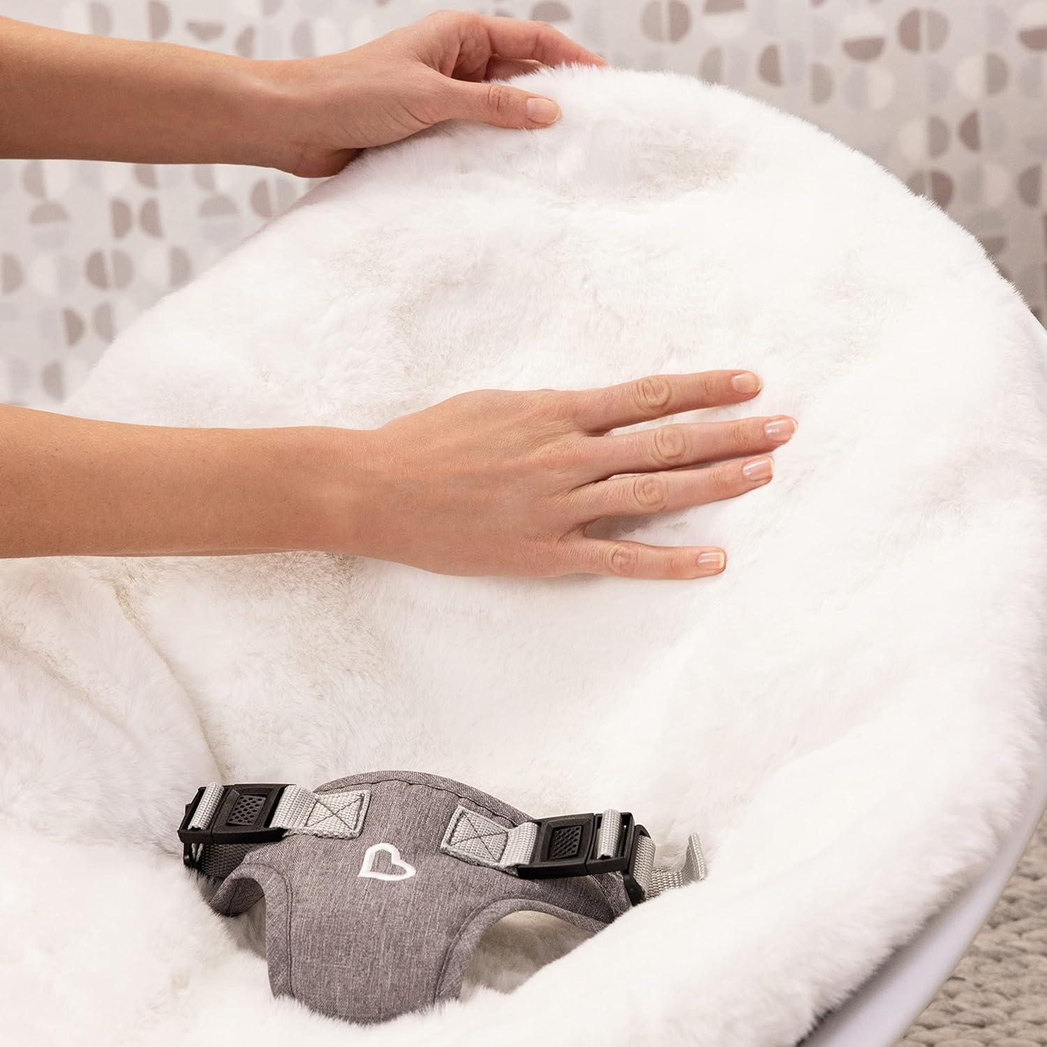 Luxe Swing set includes 1 baby swing with 5 levels of range of motion and 1 premium faux fur cover in white