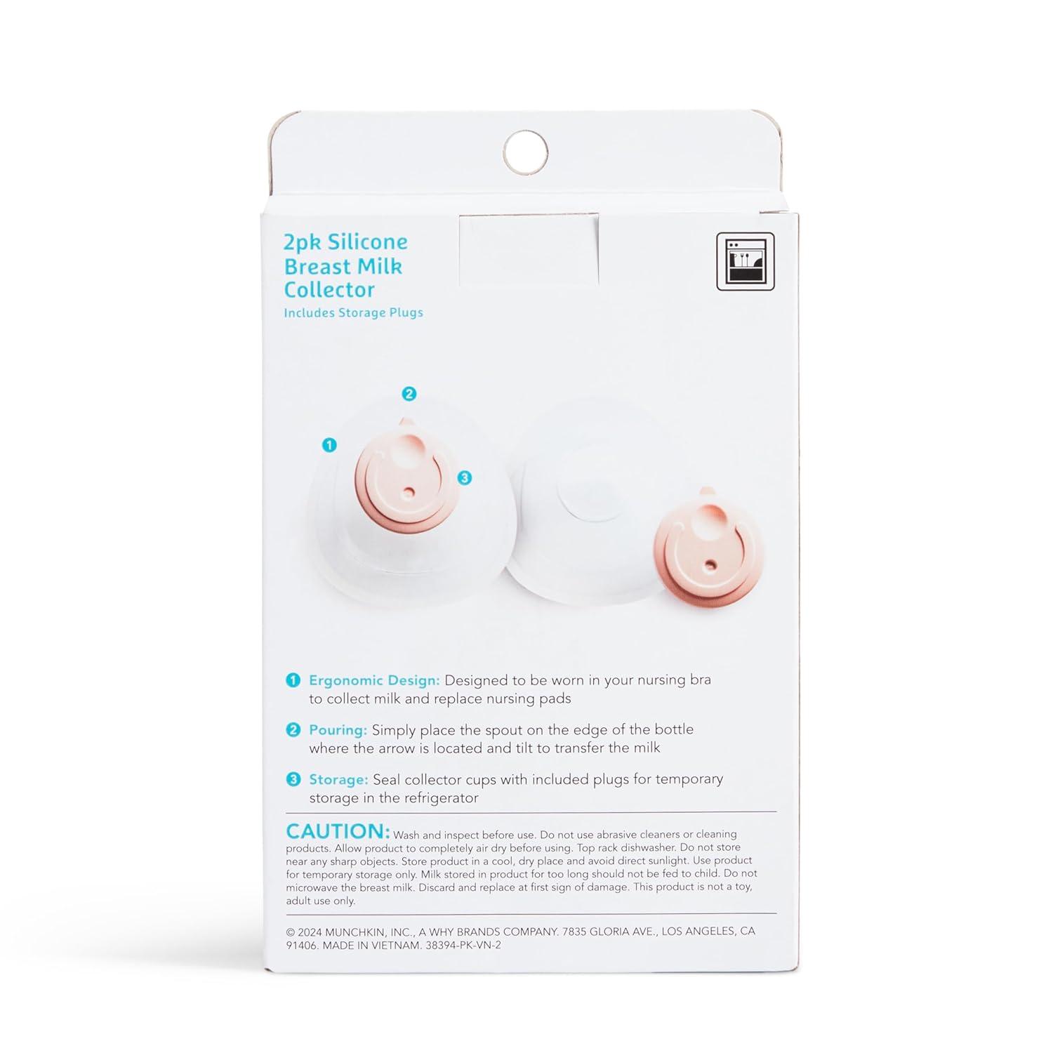 Munchkin Breast Milk Collector Cups with Storage Plug, Food Grade Silicone, BPA Free, 1.5 Ounces Each – Discreet & Comfortable, Leak Free, Breastfeeding Essential for Postpartum Moms, 2 Pack