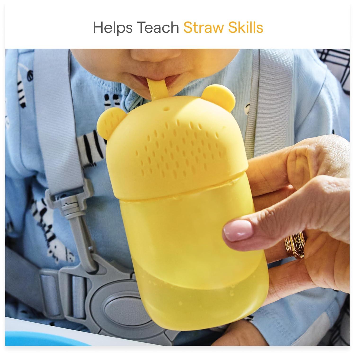 Squeezable yellow straw cup for easy baby and toddler drinking