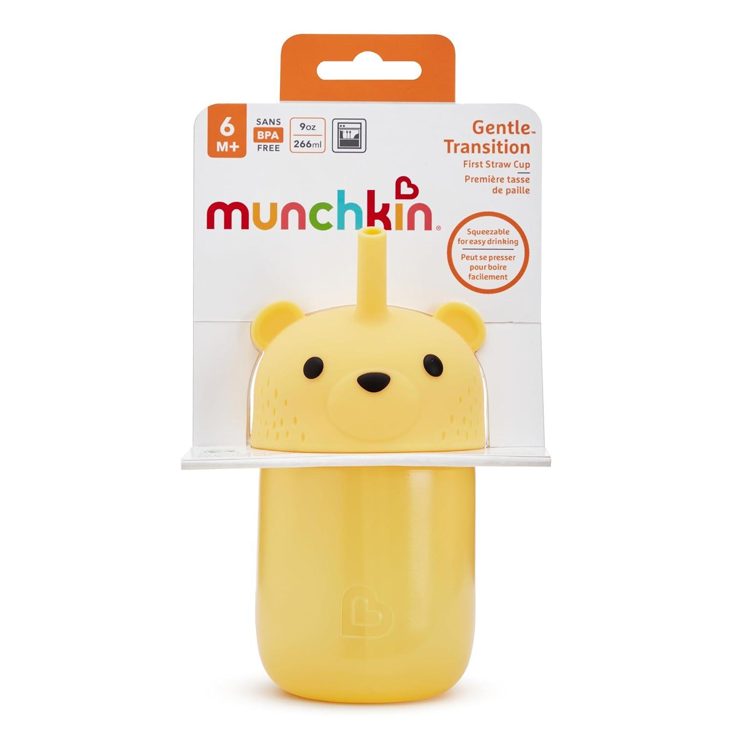 Munchkin Gentle™ Transition Honey Bear Straw Cup for Babies and Toddlers 6 Months and Up, Squeezable Sippy Bottle for Easy Drinking, 9 Ounce, Yellow