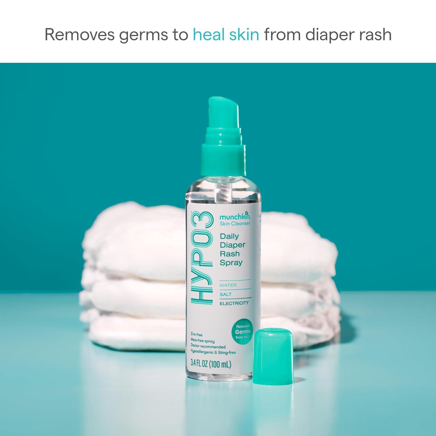 Munchkin® HYP03 Diaper Rash Hypochlorous Acid Spray for Face and Body, FSA Eligible, Removes Rash-Causing Germs, Helps Promote Healing, Gentle for Sensitive & Eczema-Prone Skin, 3.4oz