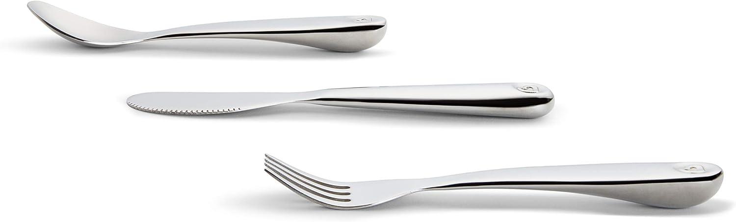 Big on style but small enough for toddler mouths and hands, Polish stainless steel utensils give mealtime a much-needed upgrade. This sleek metallic flatware is the first of its kind for kids and helps toddlers transition to self-feeding with style and ease. They'll feel like grown-ups at the dinner table with stainless steel forks, spoons and knives designed with their safety and size in mind. Parents love the neutral, goes-with-everything design (no bright colors in sight!) and toddlers love elevating their status to “big kid.” Everyone wins!