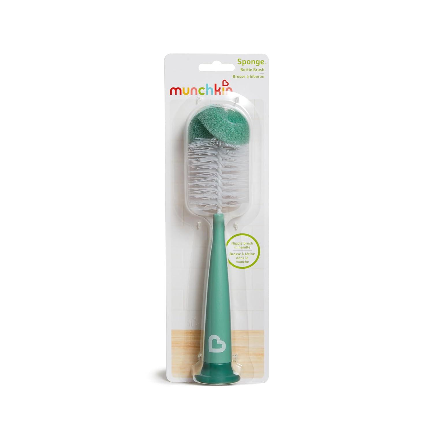 Washing and sanitizing your baby's bottles is a daily chore that's essential for safety and health, but it doesn't have to be a bore. Munchkin's Sponge Bottle Brush makes bottle cleaning quicker and easier, so you can spend less time at the sink and more time with your precious little one. This 2-in-1 brush is a bottle brush and nipple brush in one, so you can clean every inch of your baby bottles with just one handy tool. The sponge tip helps you reach all areas with a sudsy swipe, while the non-slip handle gives soapy hands the right grip while cleaning. The only thing dropping will be the amount of time you spend cleaning bottles. The brush base sits upright on your countertop when you're done, airing out quickly and keeping your brush off of counters. Washing and sanitizing your baby's bottles is a daily chore that's essential for safety and health, but it doesn't have to be a bore. Munchkin's Sponge Bottle Brush makes bottle cleaning quicker and easier, so you can spend less time at the sink and more time with your precious little one. This 2-in-1 brush is a bottle brush and nipple brush in one, so you can clean every inch of your baby bottles with just one handy tool. The sponge tip helps you reach all areas with a sudsy swipe, while the non-slip handle gives soapy hands the right grip while cleaning. The only thing dropping will be the amount of time you spend cleaning bottles. The brush base sits upright on your countertop when you're done, airing out quickly and keeping your brush off of counters.