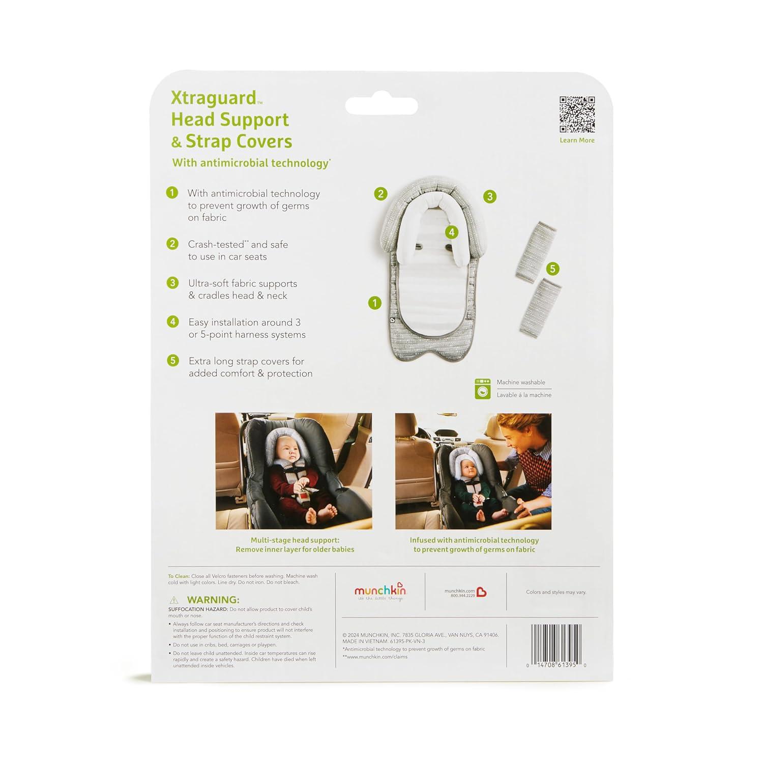 Munchkin XtraGuard Head Support & Strap Cover for Baby Car Seats with Silver-Ion Technology, Dots(Grey)